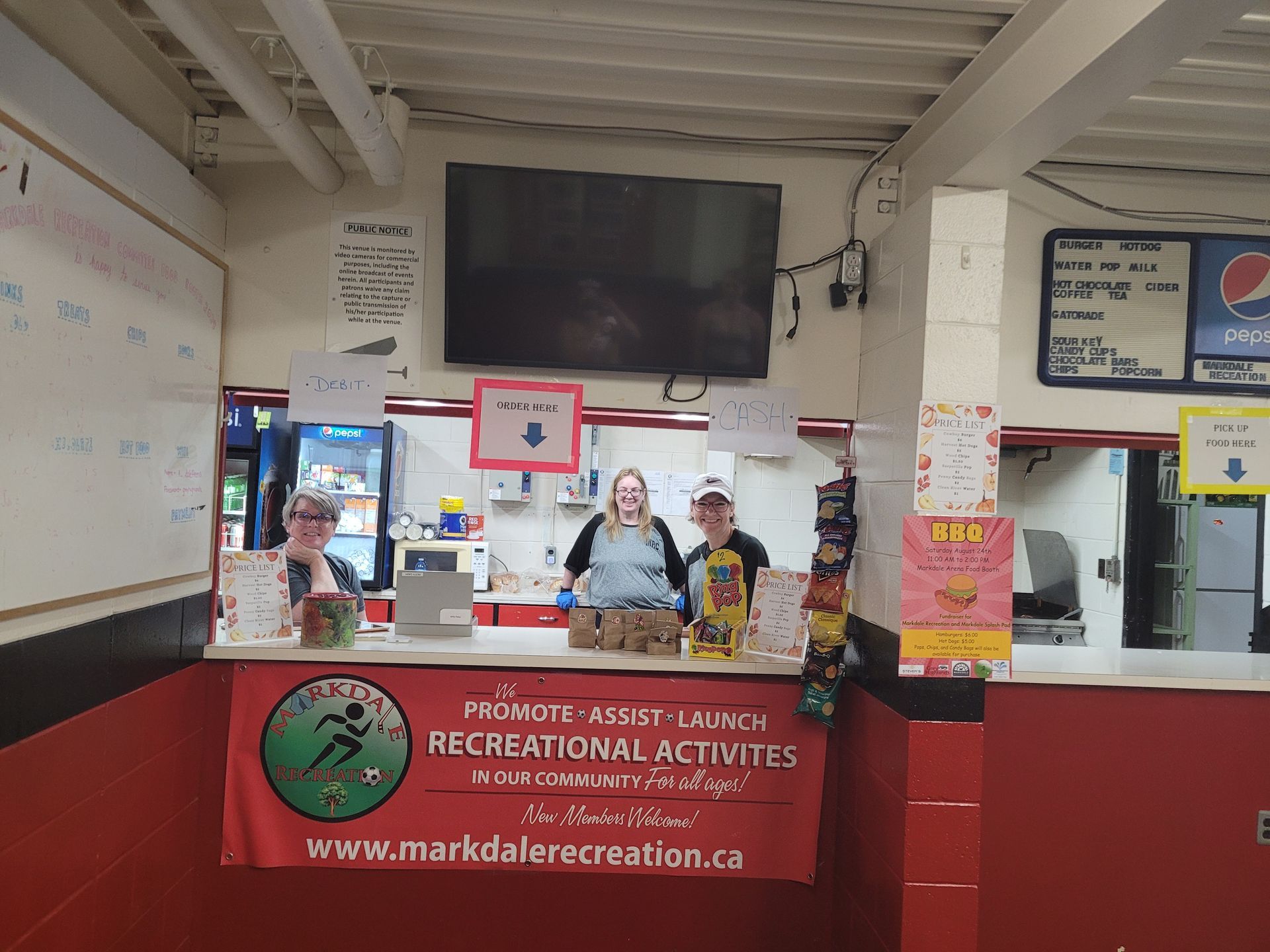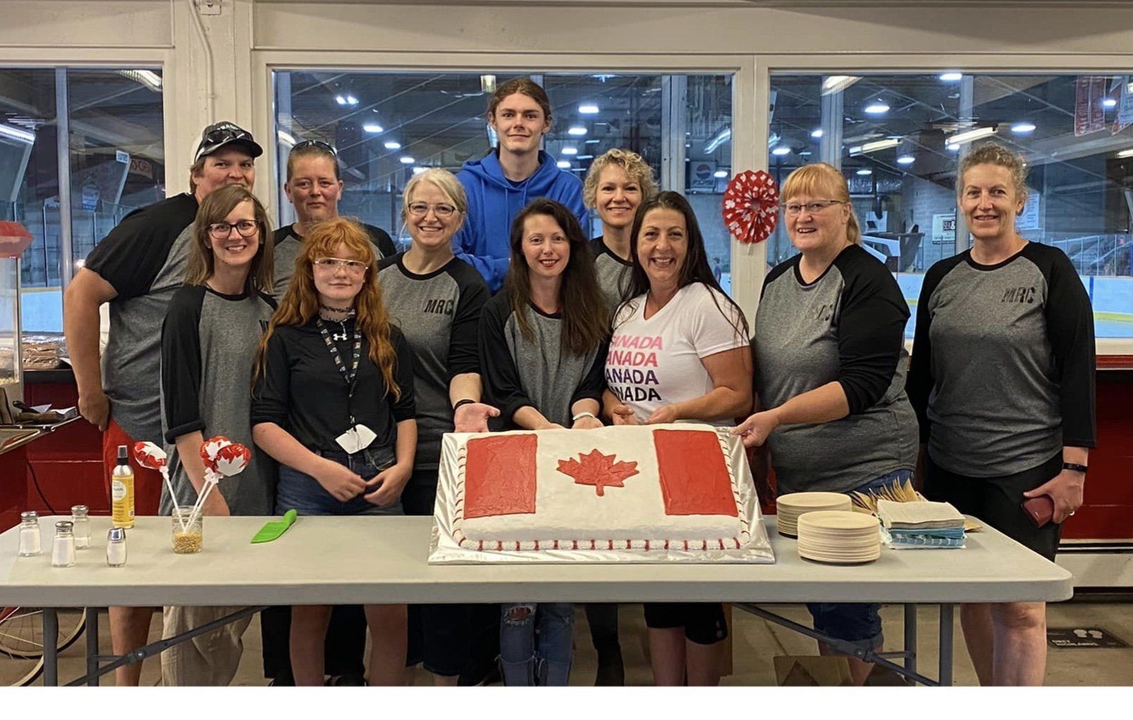 Markdale Recreation Committee and Volunteers with the Cake for Canada Day!